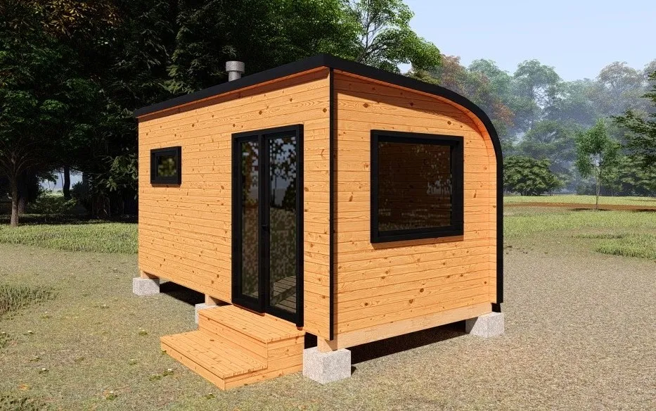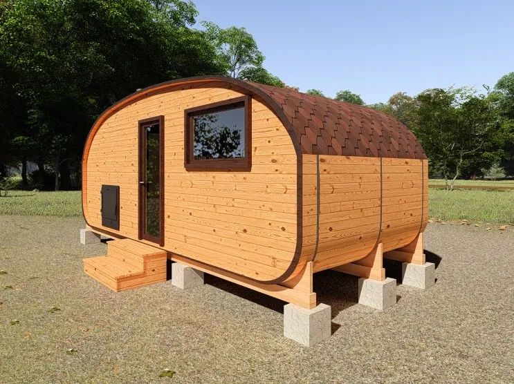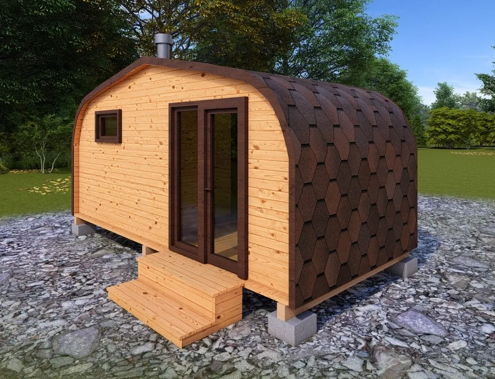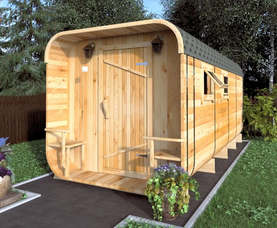 Симбиоз круглой и квадратной бани-бочки. Разработано с учётом эргономики, в ней так же просторно, как и в квадро-бочке, но при этом полукруглая крыша не дает задерживаться снегу и влаге на кровле. А еще такая баня безусловно красивая, мобильная и доступная каждому!