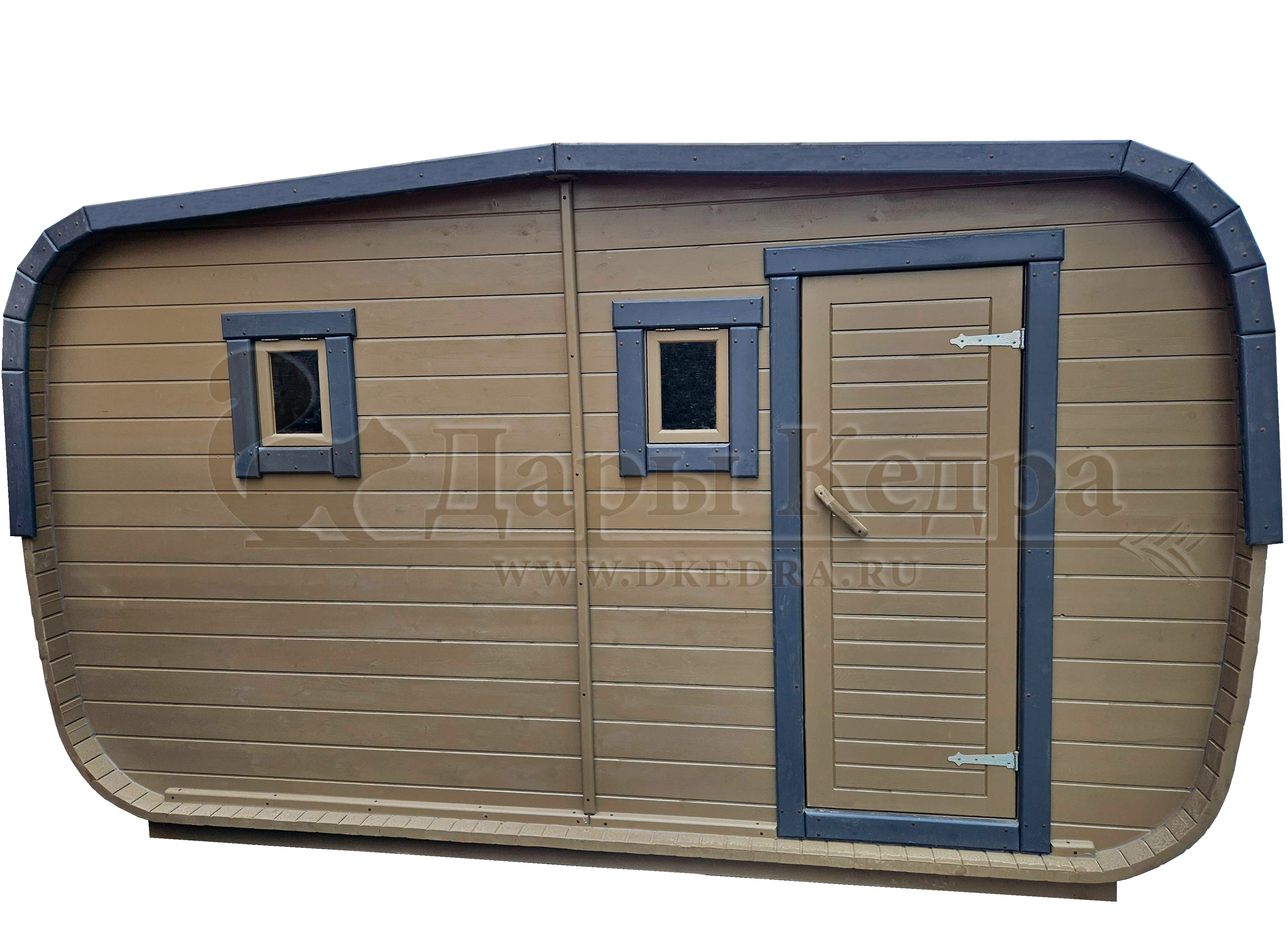 Баня-бочка овальная из кедра 4 метра Овальная баня-бочка из кедра просторная и вместительная. Имеет два отделения: раздевалку, которую можно использовать как комнату отдыха, и парилку. Для удобства пользования раздевалка оснащена лавочкой, полкой и вешалкой из кедра. В парильном отделении располагается печь и двухуровневый открытый полок. Для установки такой модели не требуется полноценный фундамент, поэтому при необходимости ее можно перенести на другое место. Так же баню-бочку можно укомплектовать верандой со скамейками, козырьком и печью с внешней загрузкой, благодаря которой весь мусор после топки останется на улице. Древесина кедра насыщена эфирными маслами и фитонцидами, которые активируются при воздействии температур. Таким образом, парение в каркаско-щитовых банях из кедра вдвойне полезно.