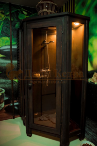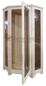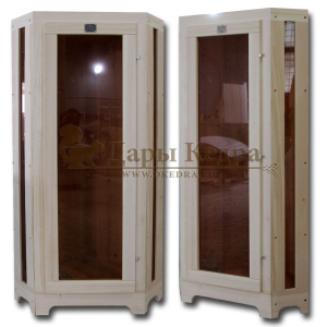 Угловая душевая кедровая кабина с бронзированной стеклянной дверью, может быть выполнена в ваших размерах и с вашими предпочтениями. Фасадные стенки по вашему выбору сделаем стекло или дерево. Кабина доставляется в разобранном виде, чтоб упрощает доставку и занос. Собирается по инструкции, всё необходимое есть в комплекте. Сантехника не входит в стоимость, но мы готовы подобрать бюджетный вариант и добавить в заказ. Кабина выполняется из массива кедра 40-45 мм щитами цельными, что делает её долговечной. Рекомендуем добавить покрытие внутри и снаружи. Наши душевые можно укомплектовать парогенератором с паропроводом и сделать внутри сиденье и полочки, что позволит её использовать еще и как паровую кабину (хаммам) для прогрева всего тела. Изделие собирается вручную мастером, возможны незначительные отличия от фото.