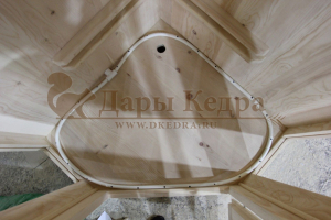 Древесина кедра богата эфирными маслами, которые при воздействии температур испаряются в воздух, что благотворно воздействует на организм во время принятия душа.