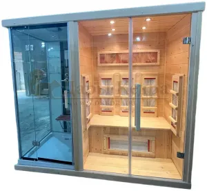 Сауна из кедра с душевой кабиной - это рациональное решение для вашего дома или спа-салона. Деревянный фасад со стеклом преобразит интерьер помещения. Благодаря встроенной душевой кабине можно комфортно завершить процедуру парения.